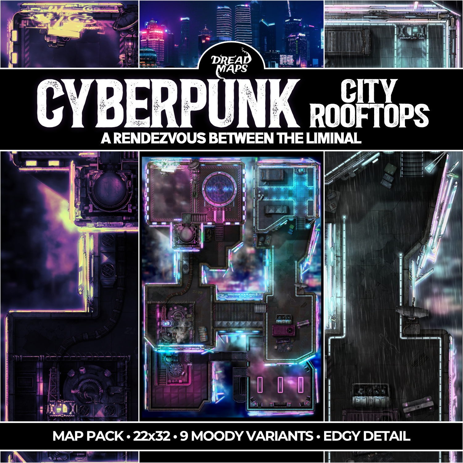 - A gorgeous 22x32 battle map of cyberpunk themed towering building rooftops